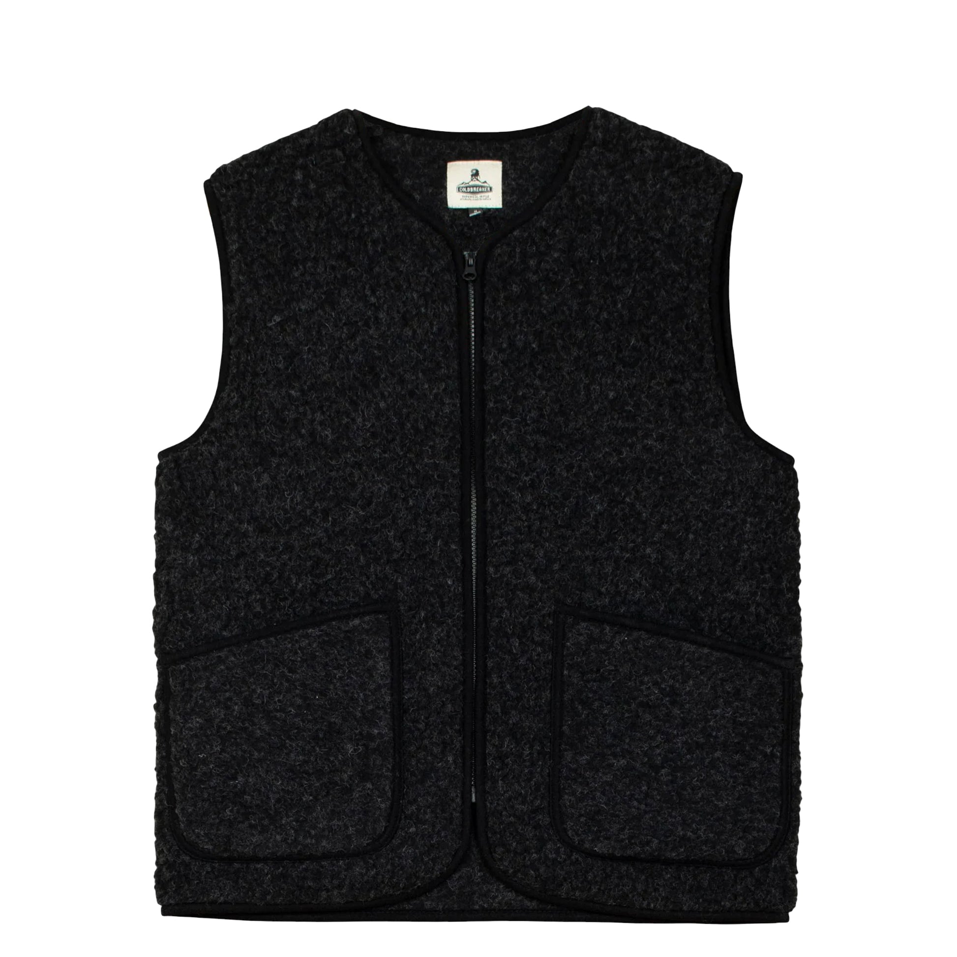 Gilet unisex a vestibilità aderente in 100% pile di lana. Girocollo, zip frontale, tasche laterali e bordature tono su tono. Firmato Coldbreaker, brand irlandese: stile rustico, caldo naturale e produzione locale in Polonia con lane di alta qualità.