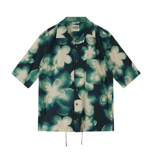 Short-sleeved shirt with adjustable drawstring and Monster print in blue tones. An original and versatile garment, combining functionality and graphic character, perfect for a sophisticated and dynamic casual style.