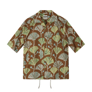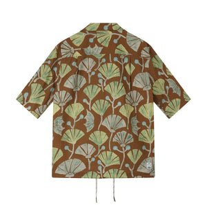 Short-sleeved shirt with adjustable drawstring in earth tones. An original and versatile piece, combining functionality and graphic style, perfect for a sophisticated and dynamic casual style.