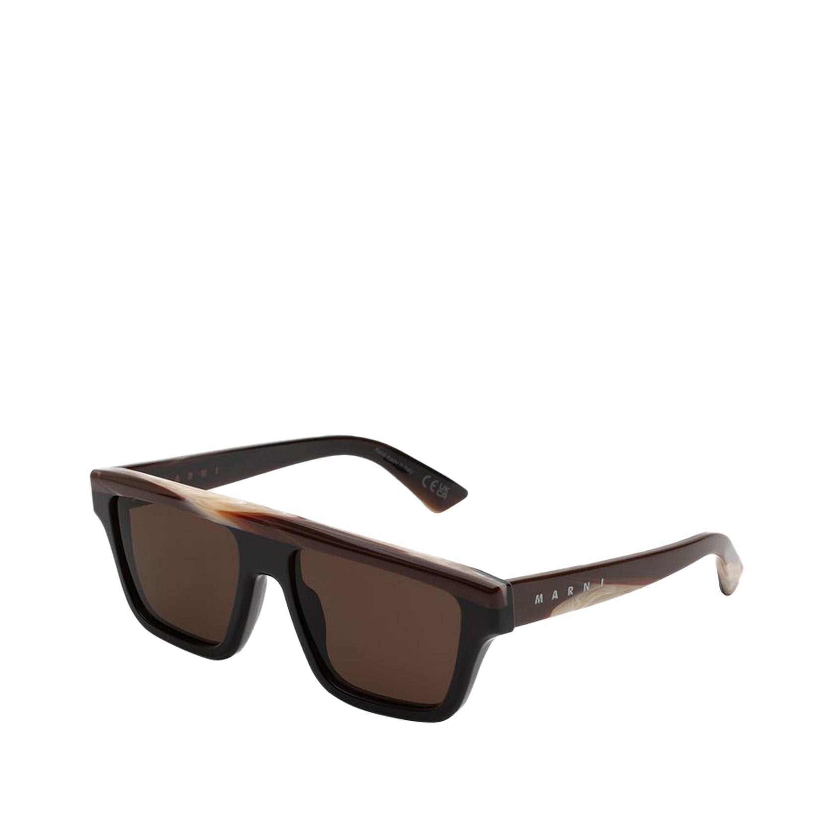 Marni Nistakari Chocolate Horn sunglasses with a chocolate-colored horn-effect frame. The warm tones and modern design make this model elegant and distinctive, perfect for completing sophisticated looks with personality.