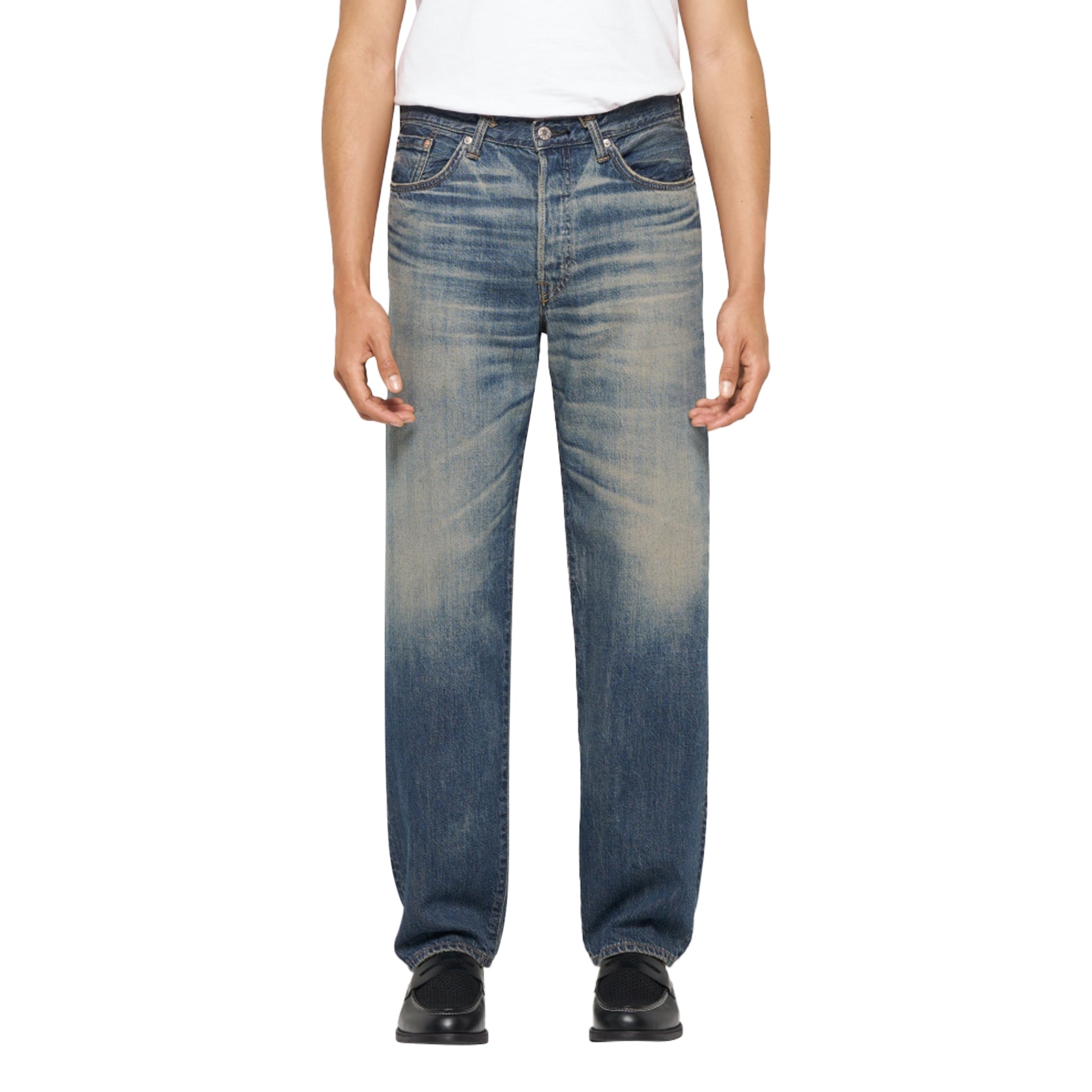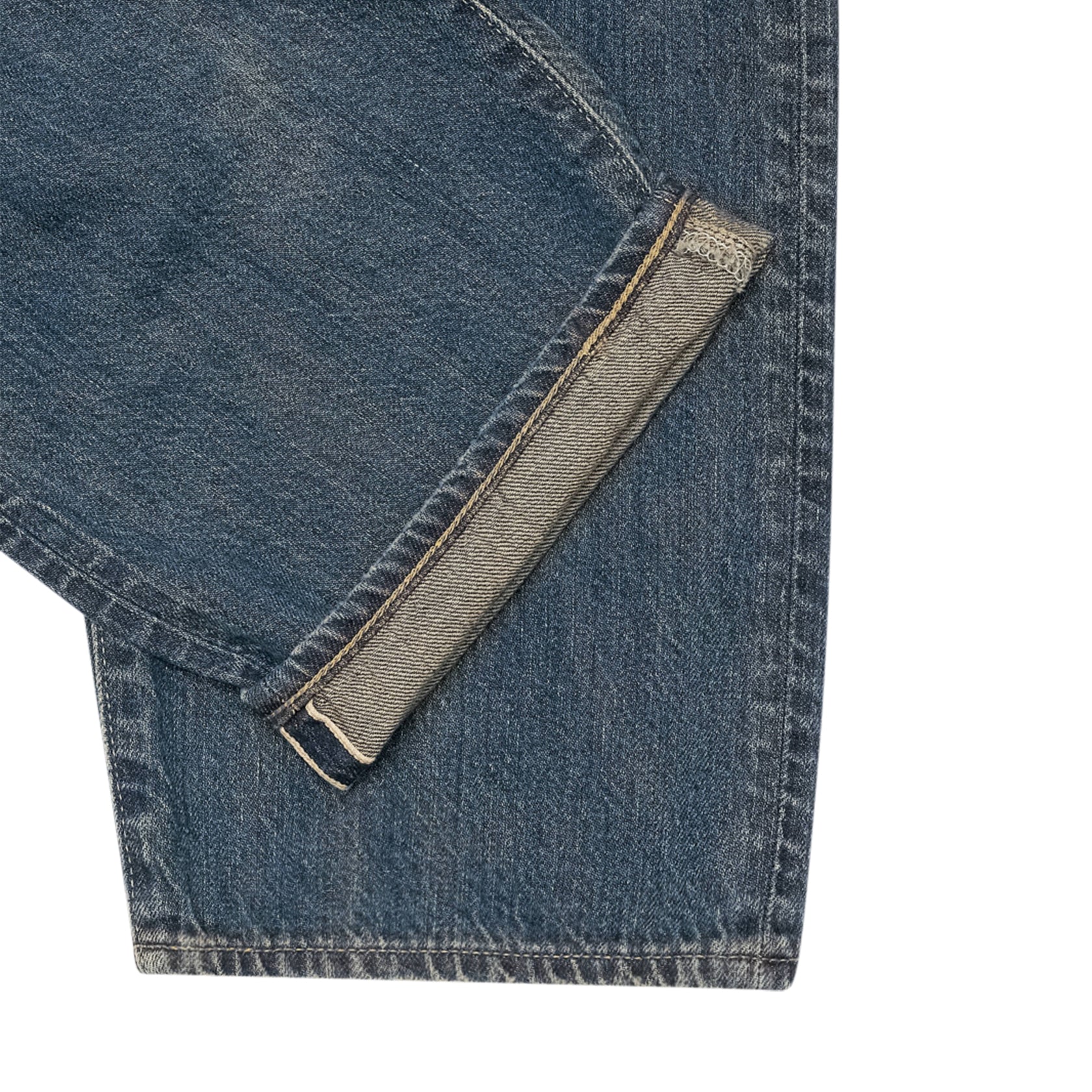 The Loose Jeans are made in Japan from 10.5 oz Kaihara Indigo Lightweight Red Selvage denim, 100% cotton. They feature a relaxed fit, mid-rise, and a classic five-pocket design with a button fly for a comfortable yet structured silhouette. The Blue Used finish maintains a clean, authentic look, designed to develop character over time thanks to the Kaihara fabric.