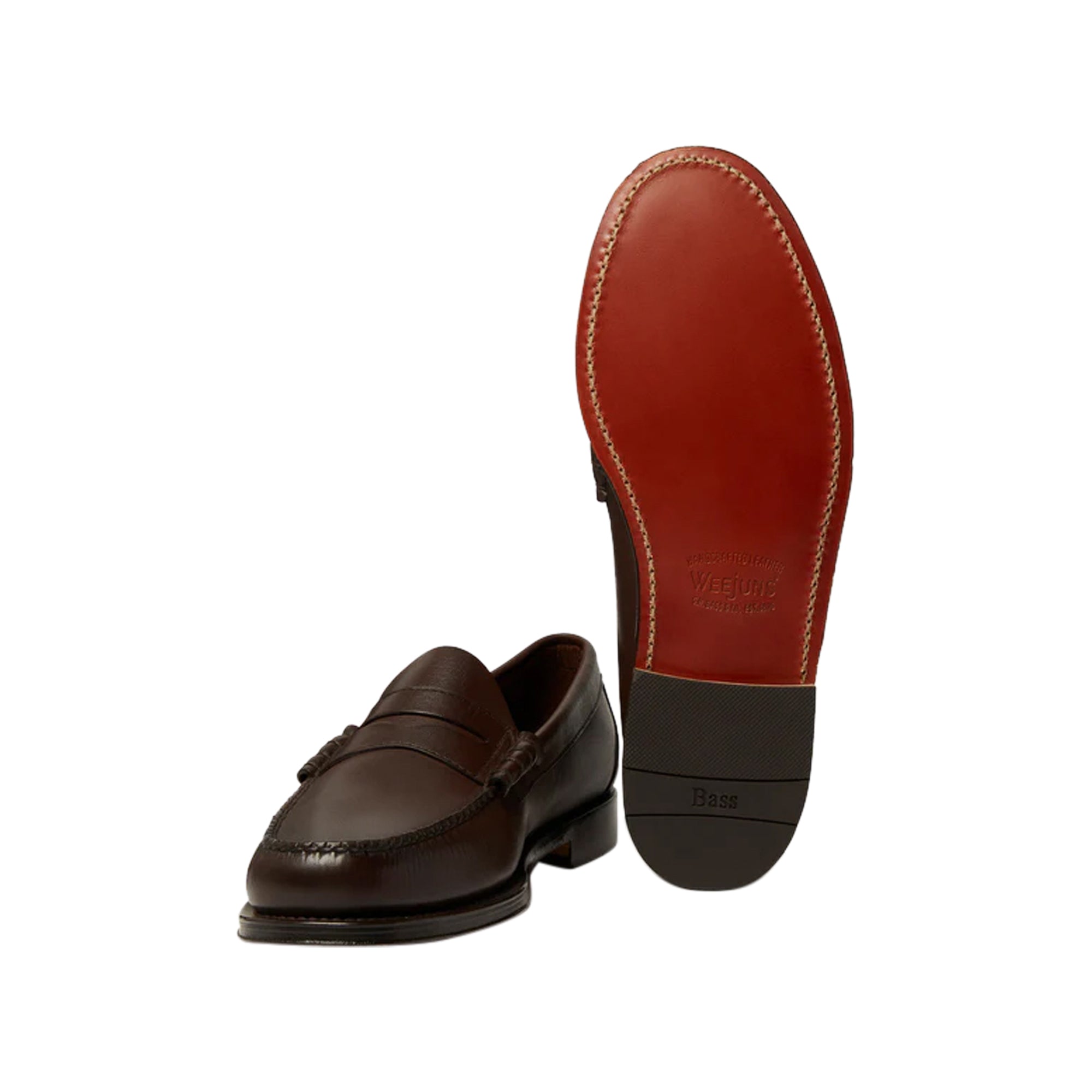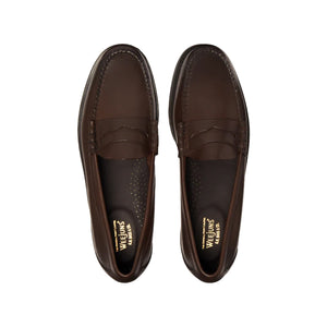 Full-grain leather penny loafers with brushed toe and heel. Hand-stitched with tonal waxed thread, leather insole with embossed gold logo. Rubber midsole and polished natural leather outsole with rubber top.