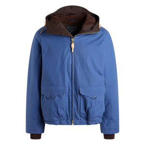 Jacket in paraffin-treated dry cotton and recycled polyester, water-repellent and breathable. Wool teddy lining, cupro sleeves with Italian wool wadding. Large double-entry pockets, two-way zip, adjustable drawstrings, and natural leather details. Made in Italy.