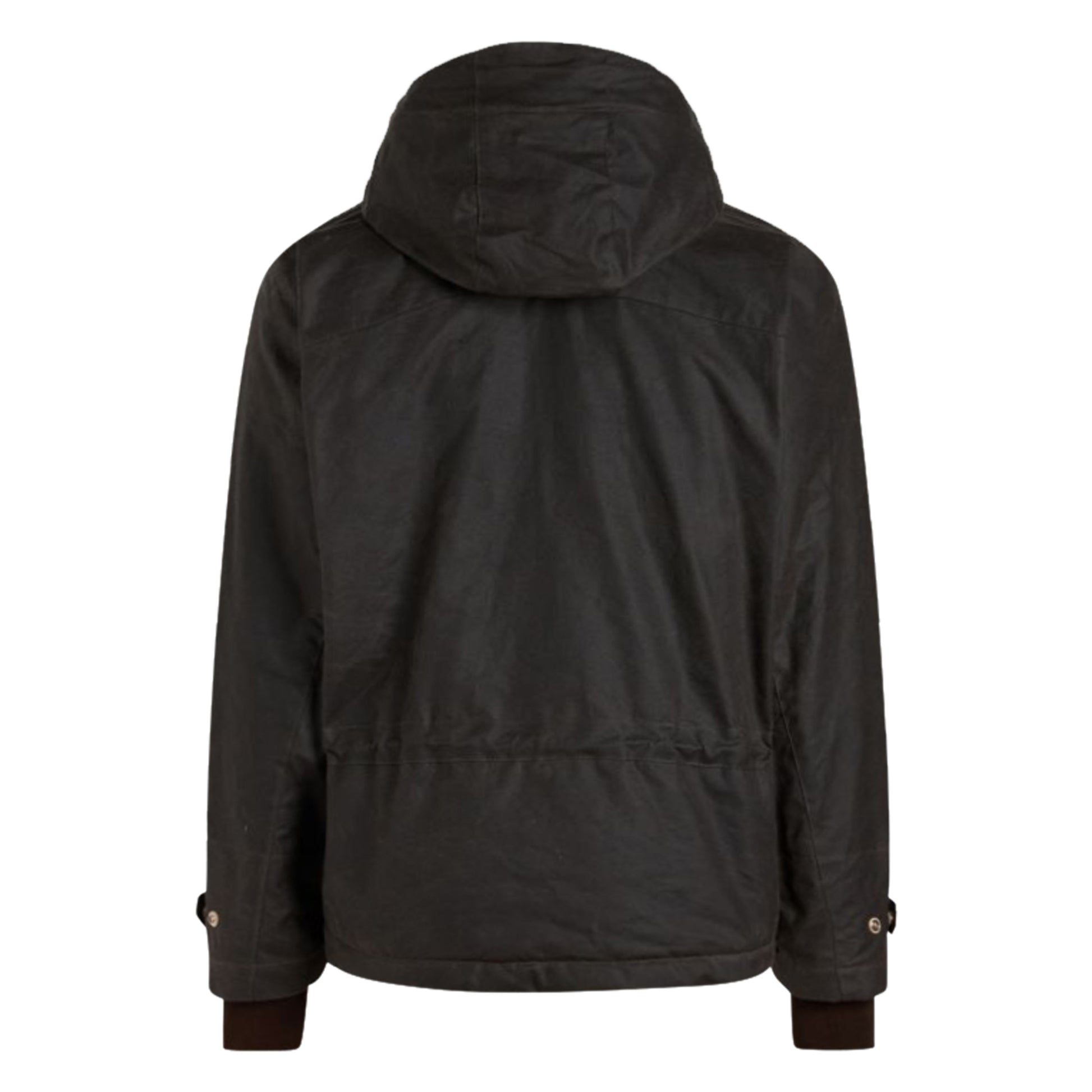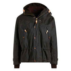 Historic jacket in water-repellent paraffin fabric. Padded with Italian wool: 90% wool teddy bear on the body, wool wadding in the sleeves, teddy bear-lined hood. Multiple zip and button pockets, internal and external drawstrings, natural leather details. Made in Italy.