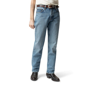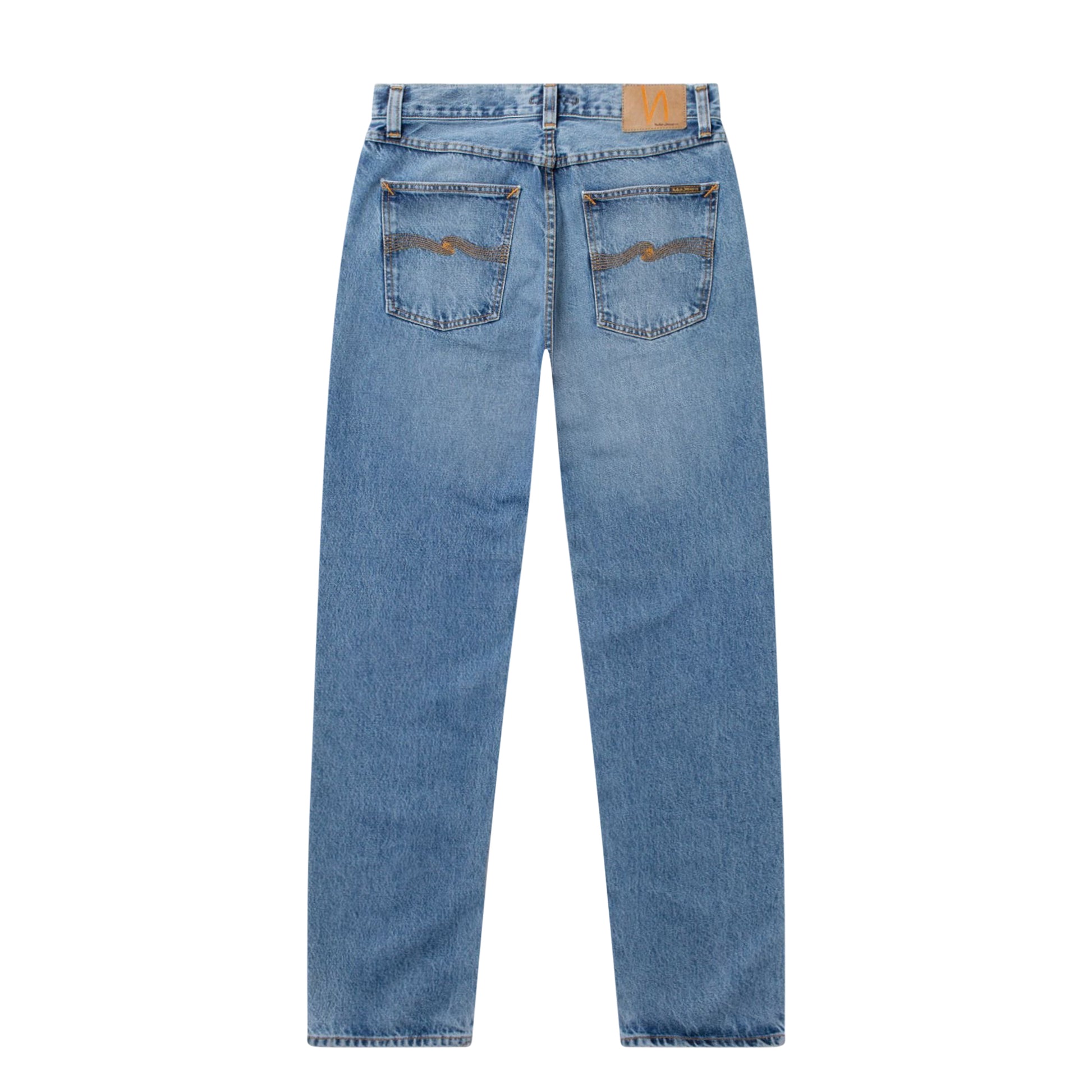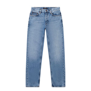 14.9 oz organic cotton jeans with tobacco stitching and copper accents. Regular fit, high waist, and straight leg for a classic, durable look. Button closure and sustainable Jacron patch.