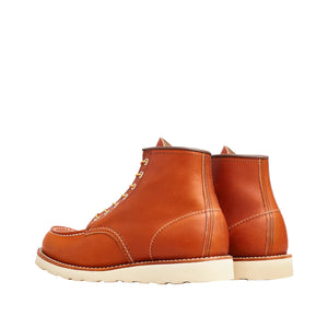 6-inch moc-toe boots in oil-tanned Oro-Legacy leather, inspired by 1970s Irish Setters. Cushion Crepe outsole with Traction Tred for grip and comfort, gold/tan Taslan laces, and Red Wing Heritage construction built to last. Available in regular and wide widths.