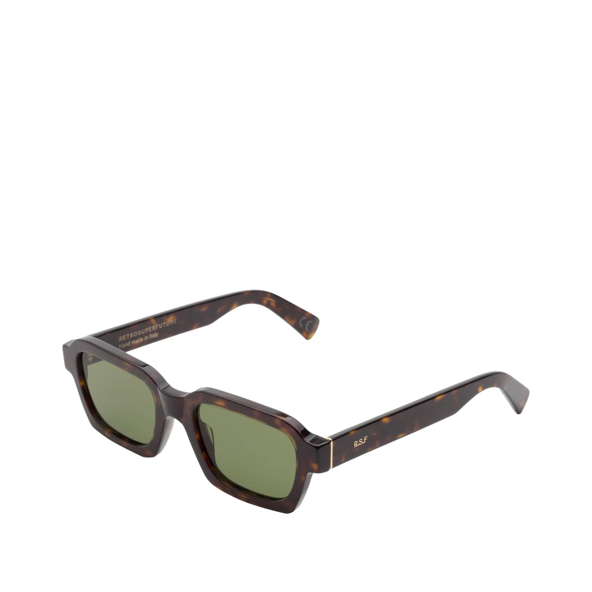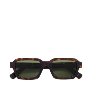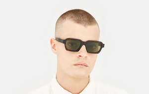 Geometric sunglasses in sturdy acetate. Design inspired by 1960s Italian classicism and 1990s grunge aesthetics. Thick frames with square temple tips and angular circles at the bottom. Bold and contemporary style, perfect for a bold and modern look.