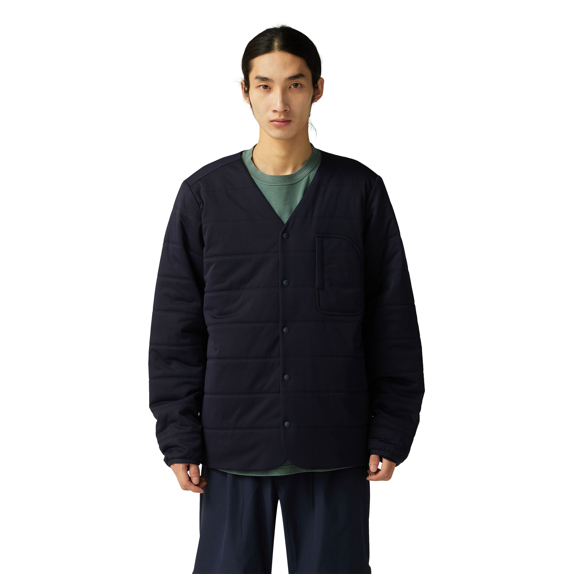 The front closure features logo-engraved snaps for easy fastening, while the chest pocket features a snap button. The seamless side pockets offer a natural and comfortable place for your hands. The fitted cut and hem just below the waist complete the design with understated elegance.