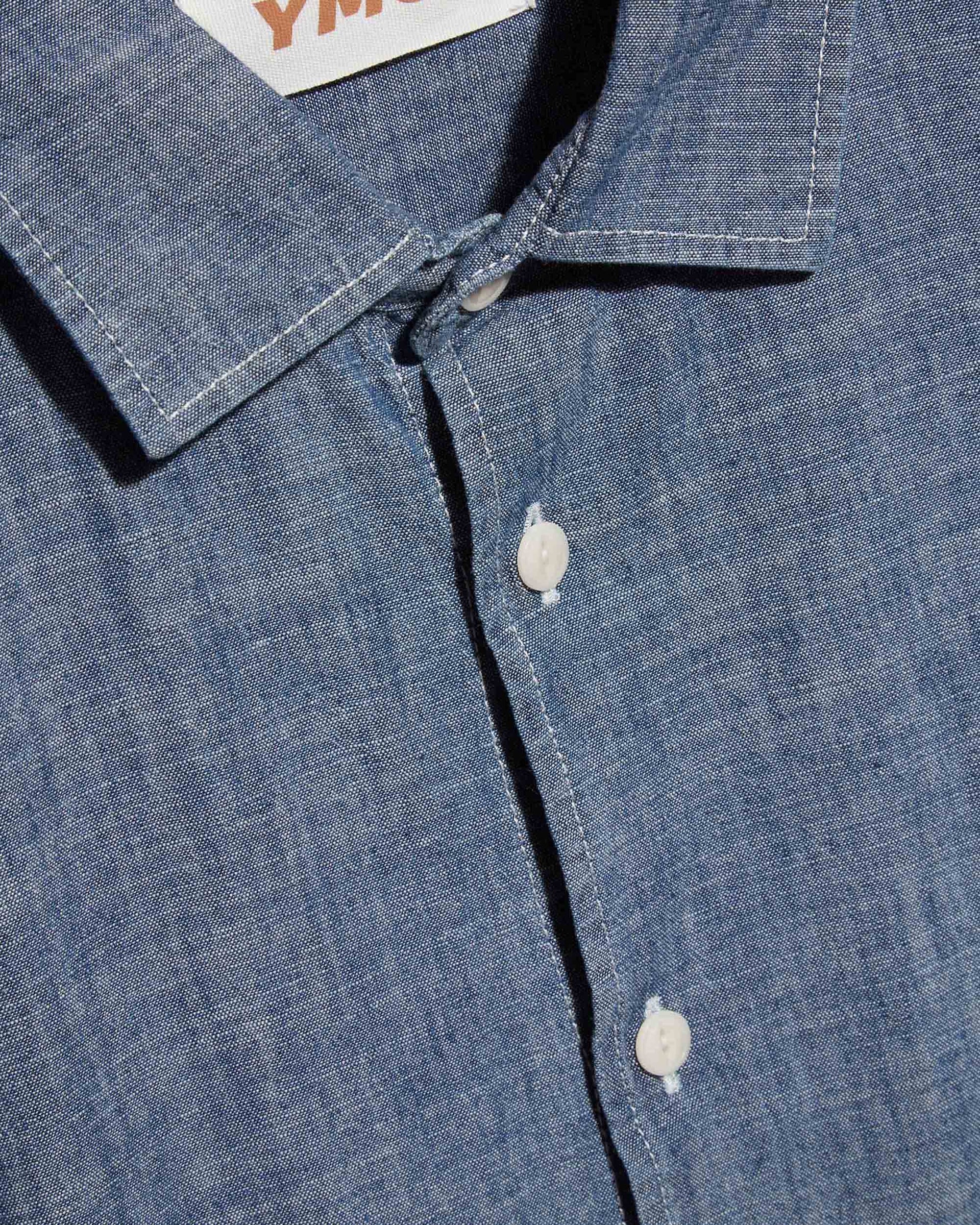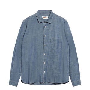 Garment-dyed organic cotton casual shirt with a soft texture and vibrant color. It features a patch chest pocket, corozo buttons, and a curved hem. It combines sustainable style with timeless design, perfect for a modern and authentic wardrobe essential.