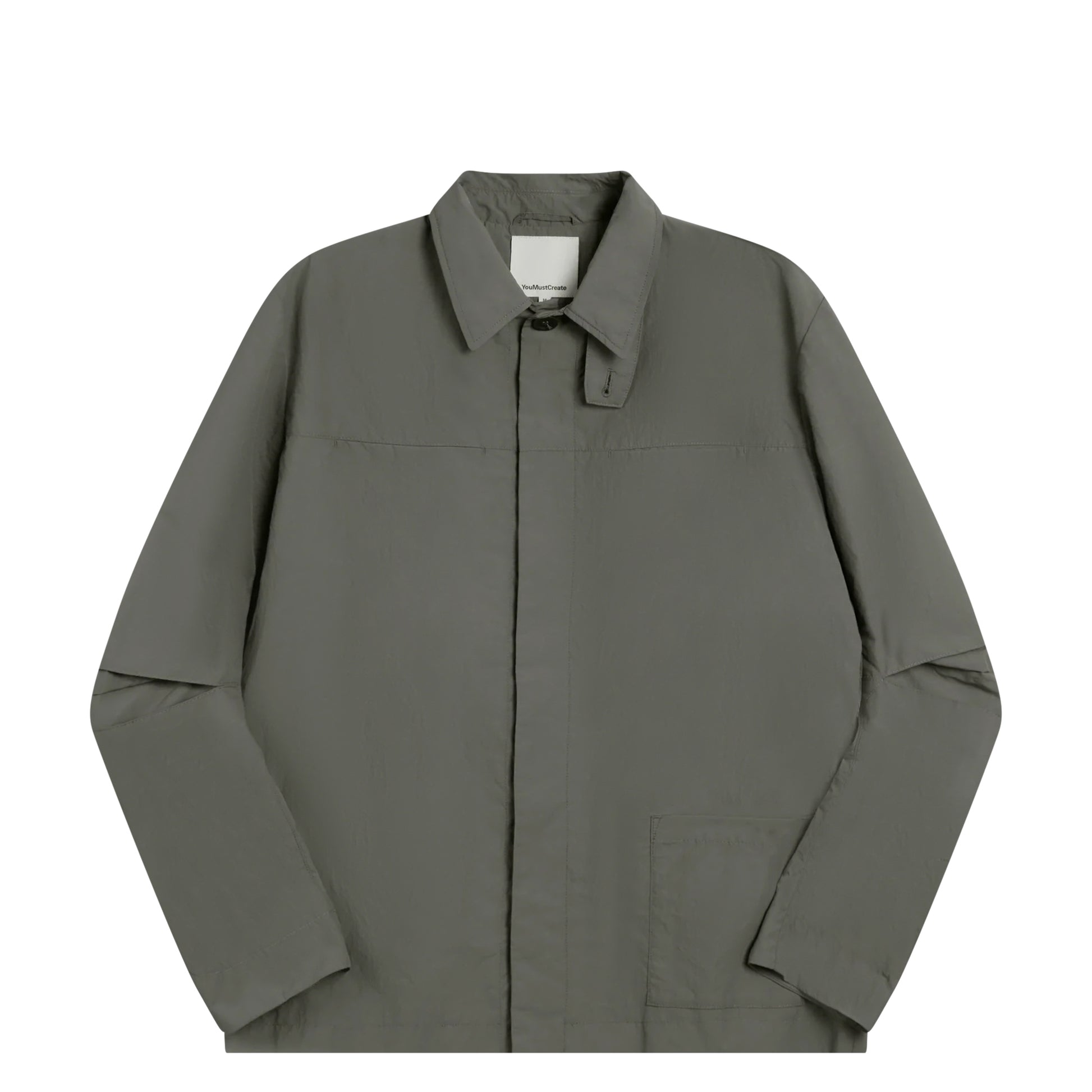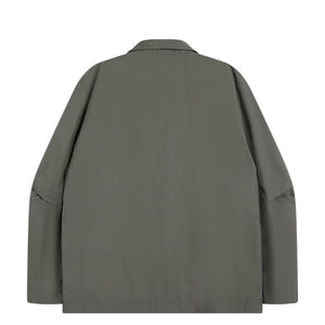 Lightweight jacket in nylon and recycled cotton. Pleated sleeve detail, chest slit pockets, and lower patch pockets. Concealed Corozo button closure and fully lined with an inside pocket. High, wrap-around throat protection.
