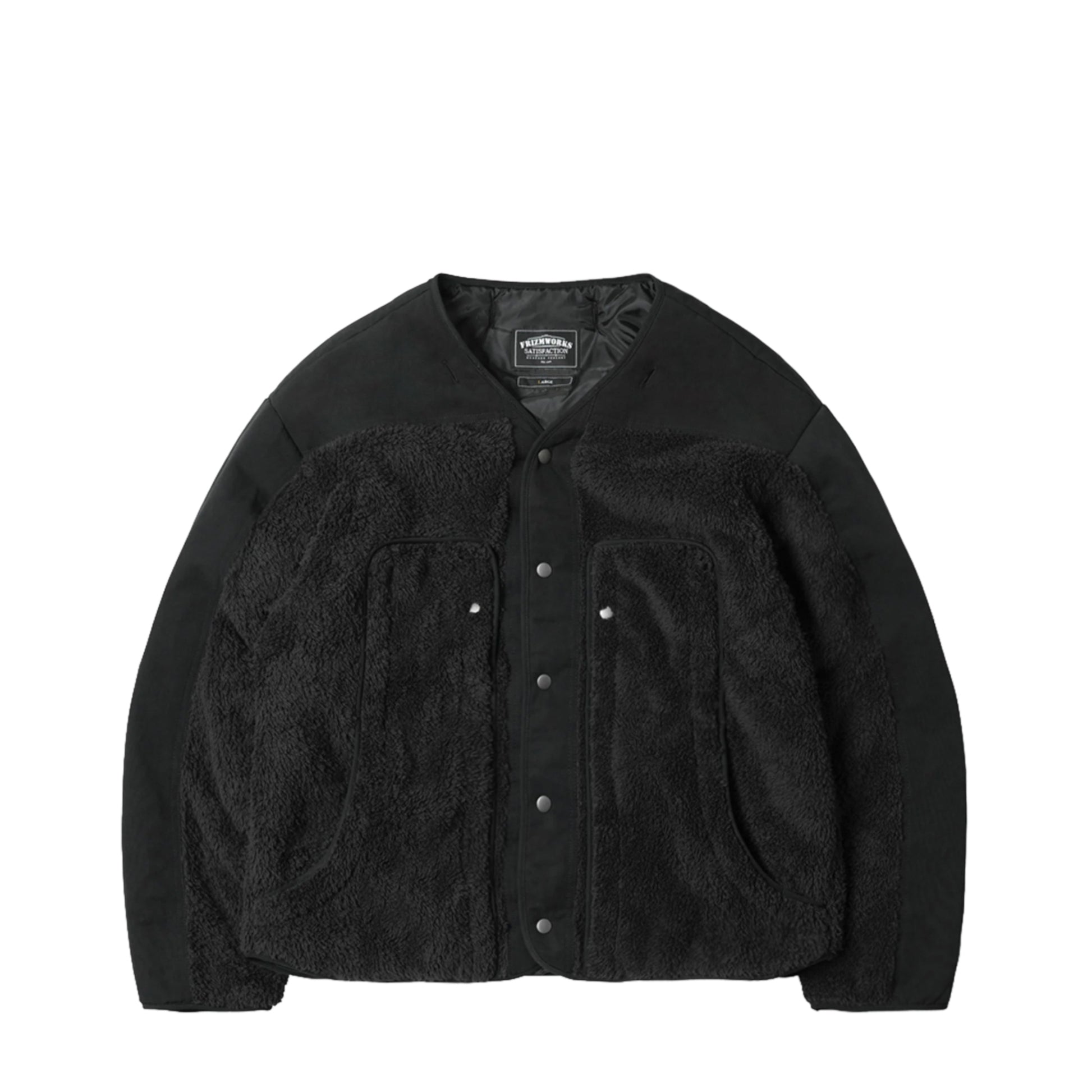 Workwear-inspired, cropped cotton twill jacket with a removable two-tone military fleece lining. Slightly oversized fit through the shoulders and sleeves for a relaxed look. Bellows chest pockets and a two-way YKK zipper complete the rugged, functional design.