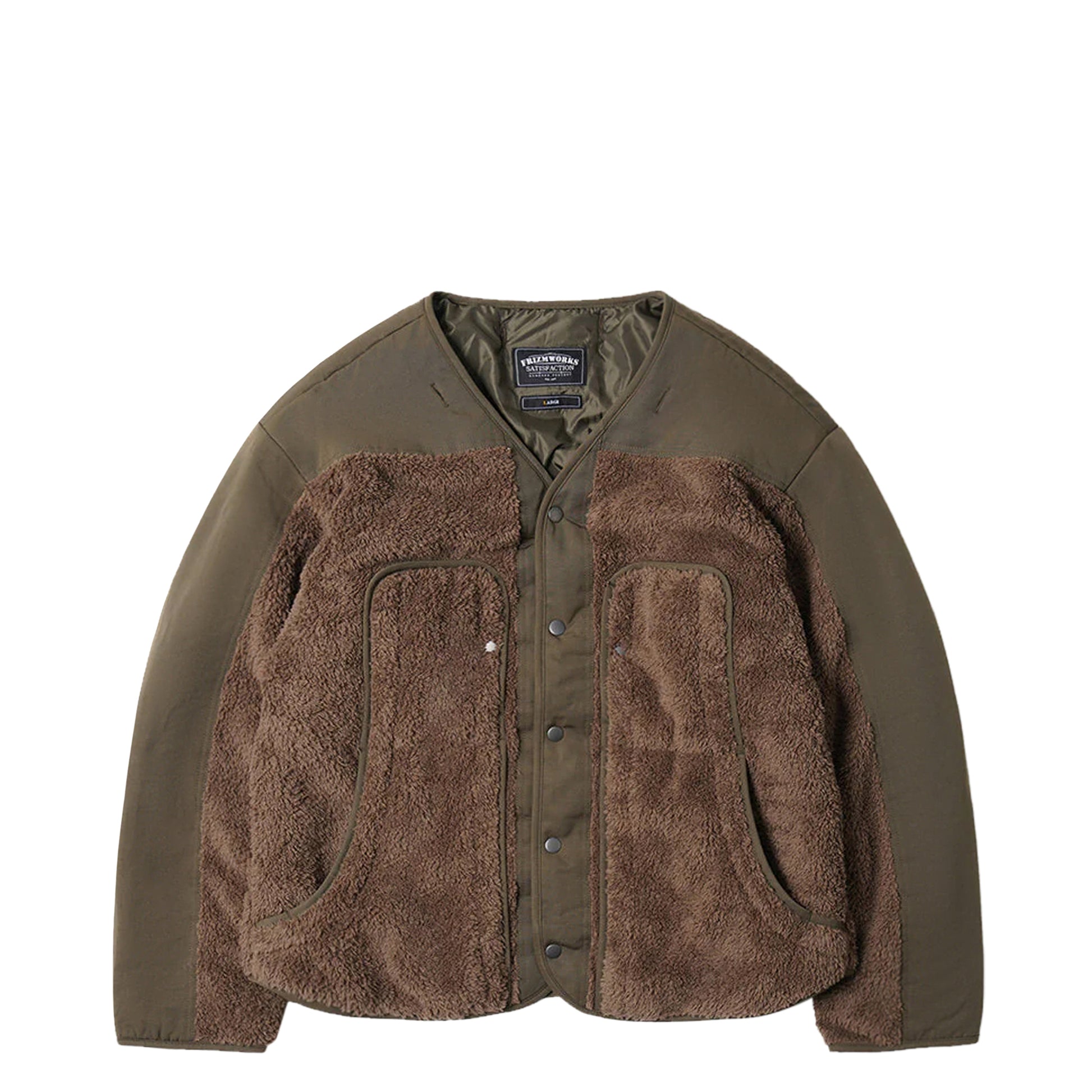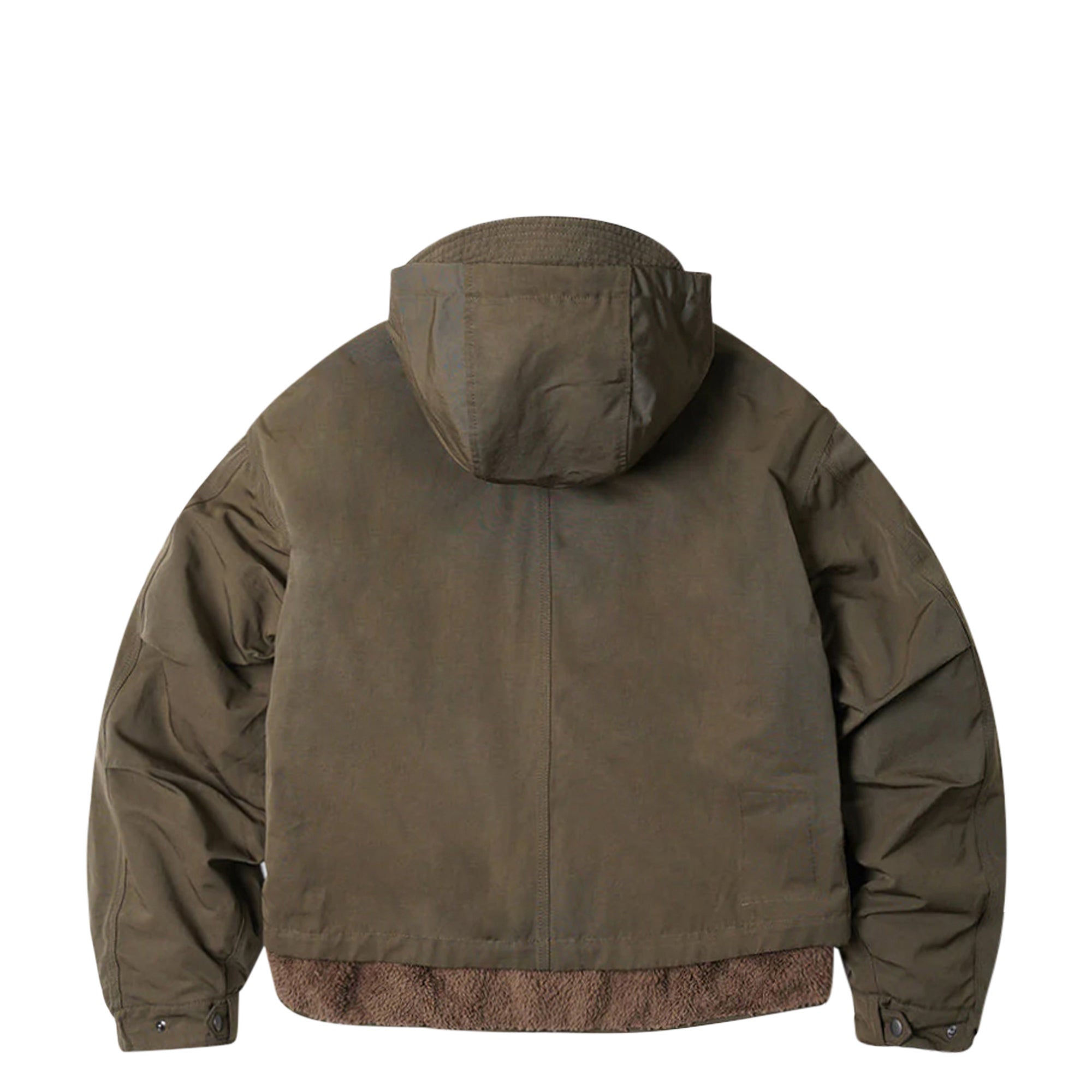 Workwear-inspired, cropped cotton twill jacket with a removable two-tone military fleece lining. Slightly oversized fit through the shoulders and sleeves for a relaxed look. Bellows chest pockets and a two-way YKK zipper complete the rugged, functional design.