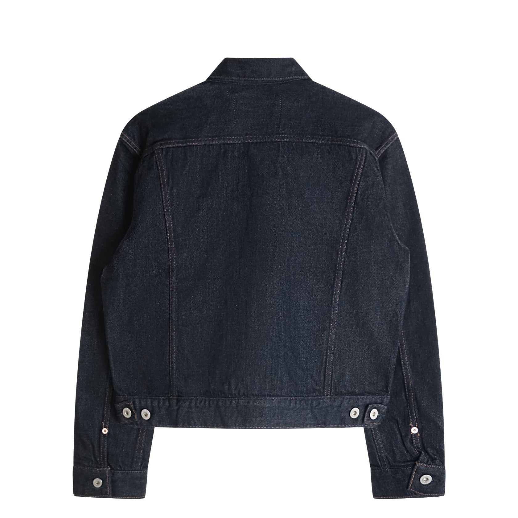 The Selvedge Type 2 Denim Jacket 11 oz from Japan Blue Jeans reinterprets the iconic Type 2 jacket with a contemporary twist. Crafted from 11 oz Japanese selvedge denim, it combines structure and lightness, making it ideal for transitional wear. The compact yet comfortable fabric develops an authentic patina over time thanks to the deep indigo dye. The design features front flap pockets, adjustable waistbands, and a sturdy construction, true to the heritage of Japanese denim. An essential piece, meticulously detailed and built to last.