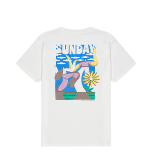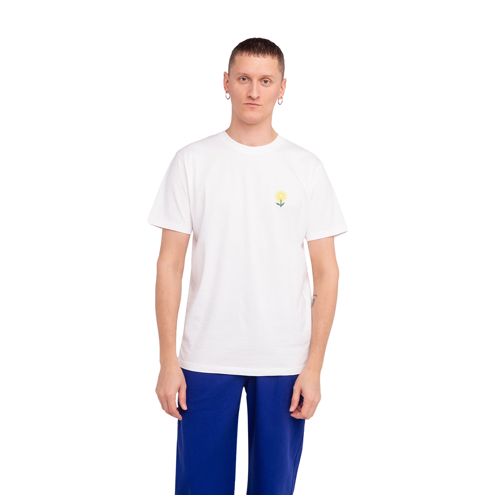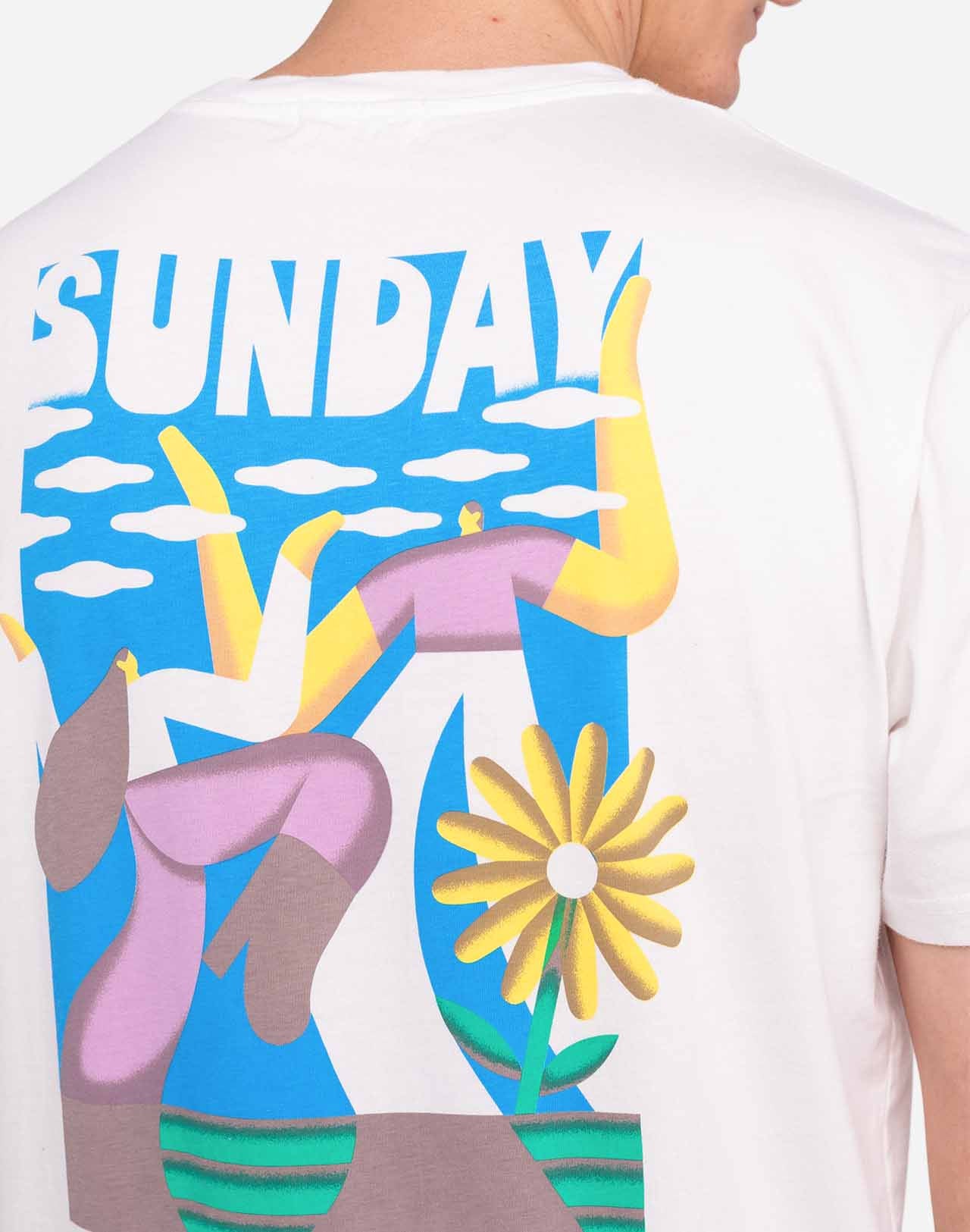 Made in Portugal from 180g GOTS-certified organic cotton, this T-shirt features a straight fit with a natural fall. Floral embroidery on the chest adds subtle balance, while the Florian Gallou illustration extends across the back, playing with bold color blocks and strong contrasts against an ecru base.