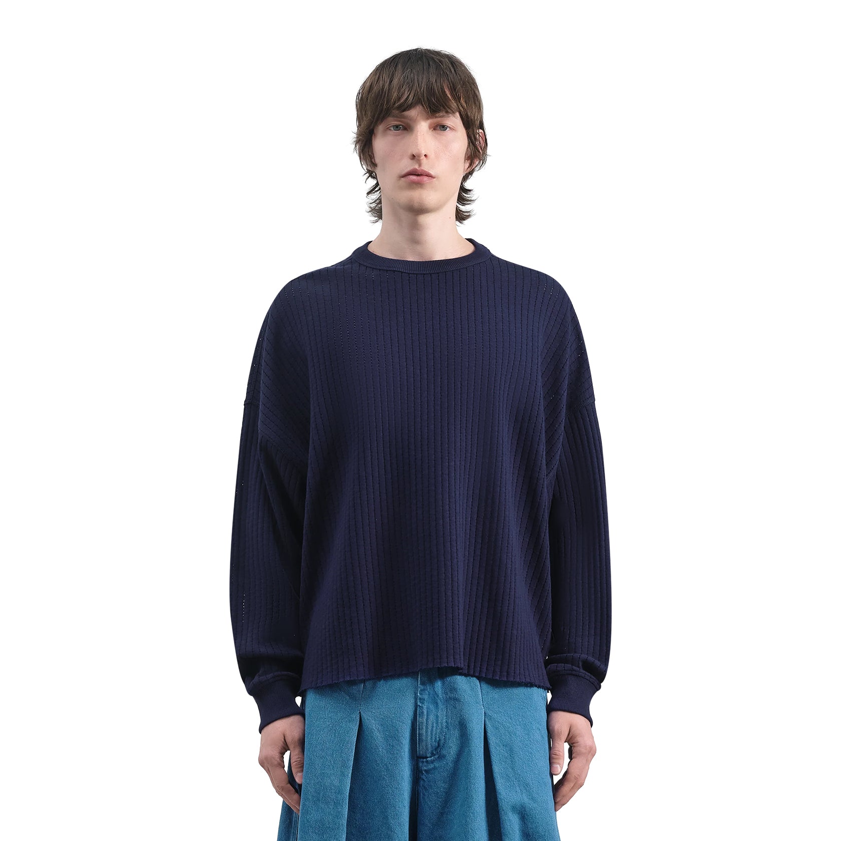 Textured cotton jersey crewneck sweatshirt with a clean, contemporary design. Featuring a finished collar, ribbed cuffs, and a raw-cut hem. A relaxed, oversized fit with a unisex design for a relaxed, versatile style.