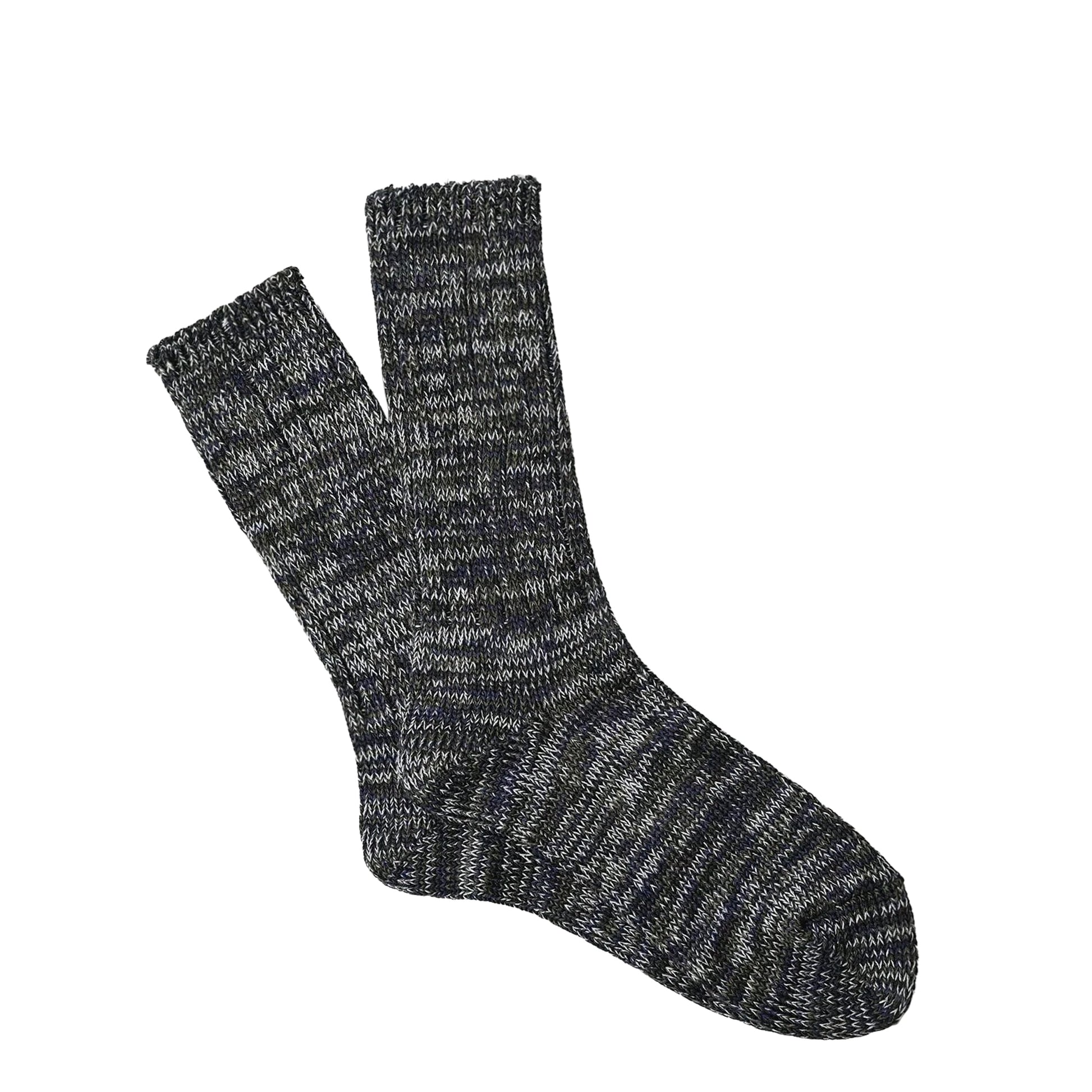 I calzini 5-Color Mix Crew di Anonymous Ism uniscono artigianalità e qualità. Realizzati con filati pettinati e una tecnica over-gauge su macchine low-gauge, offrono morbidezza, spessore e durata, mentre cinque colori si intrecciano creando un motivo vivo e distintivo. Taglia L: lunghezza 29,2 cm (11,5")