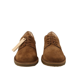 Derby artigianale in pelle naturale conciata al vegetale, suola in gomma crepe effetto Dainite e costruzione “Ideal”. Comfort, durata e eleganza senza tempo realizzati in Italia. Adatto per chi cerca stile e sostenibilità.