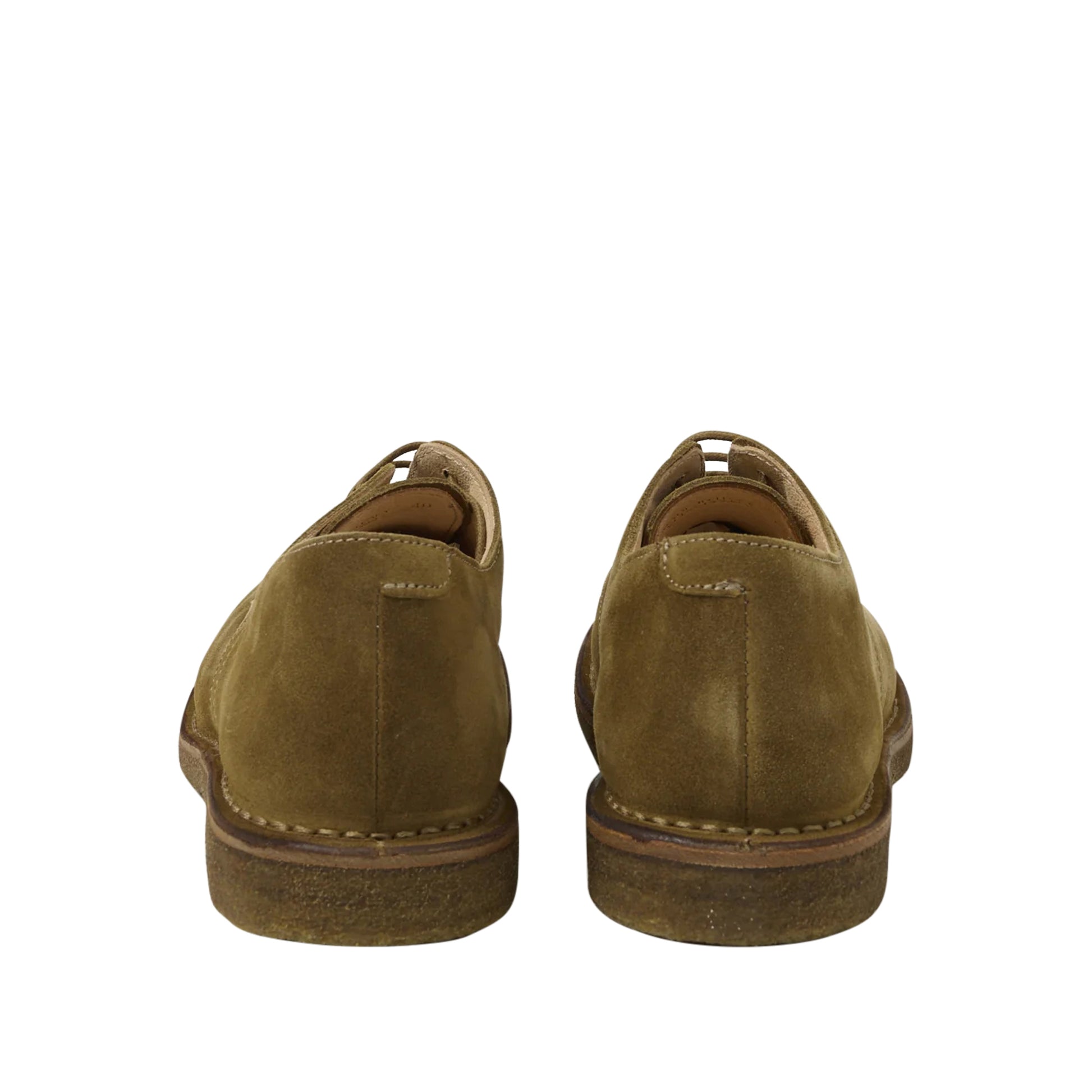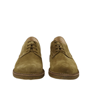 Derby artigianale in pelle naturale conciata al vegetale, suola in gomma crepe effetto Dainite e costruzione “Ideal”. Comfort, durata e eleganza senza tempo realizzati in Italia. Adatto per chi cerca stile e sostenibilità.