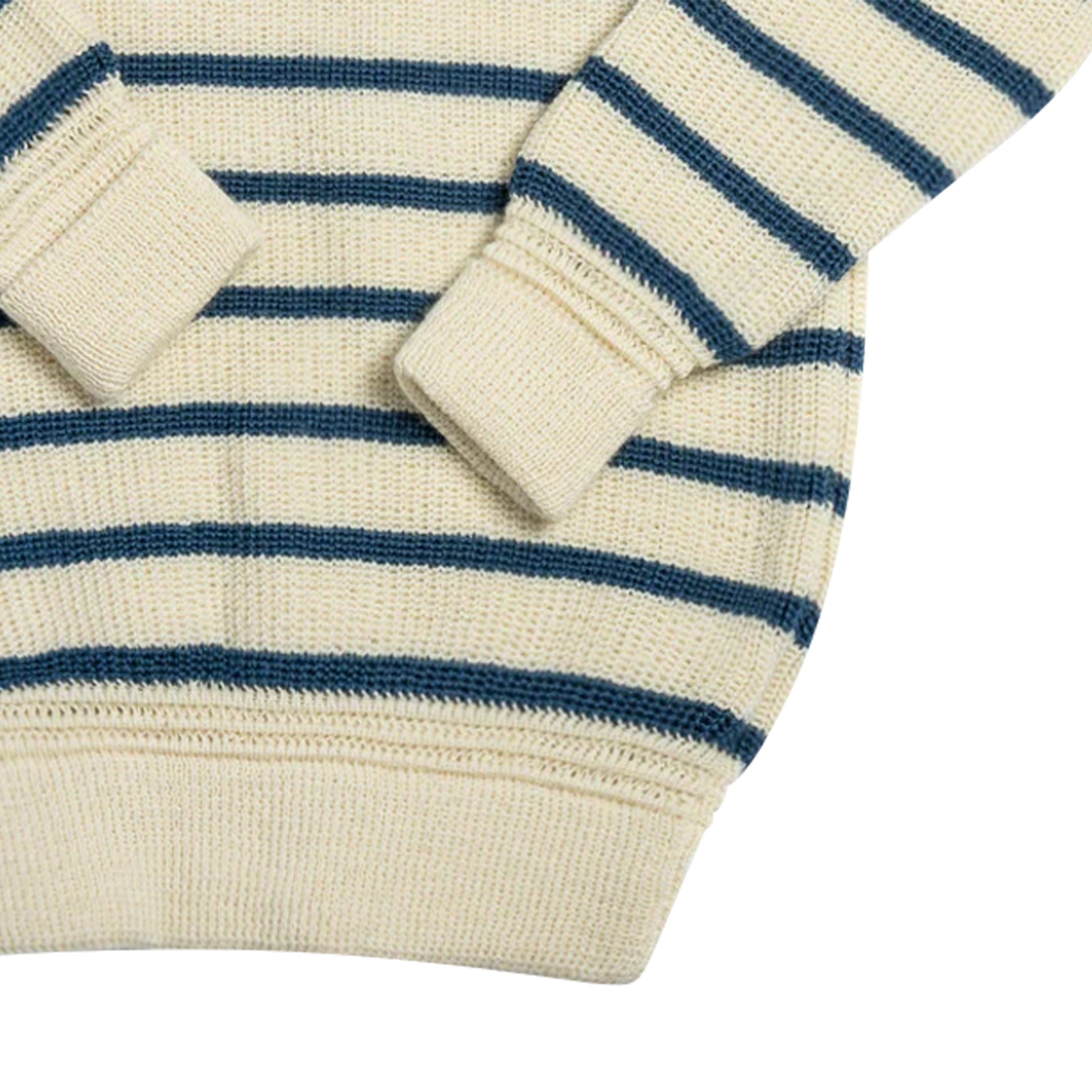 Signal Sweater Heimat in 100% lana vergine, lavorato in Germania con maglia pesante 5-gauge. Caldo, strutturato e resistente all’acqua grazie agli oli naturali del filato. Ispirato a sailing team e motorsport, con righe iconiche e dettagli cuciti a mano.