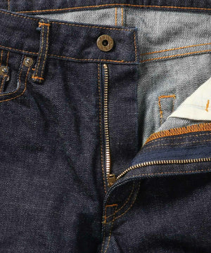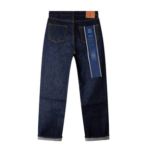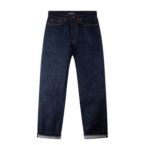 Realizzato in Giappone con denim selvedge da 14,8 oz in cotone USA, il Circle Jean unisce resistenza e comfort. Fit classico a vita media con gamba dritta leggermente affusolata. Dettagli iconici: cucitura blu, bottoni JBJ, orli chain stitch e bordo rosso selvedge.