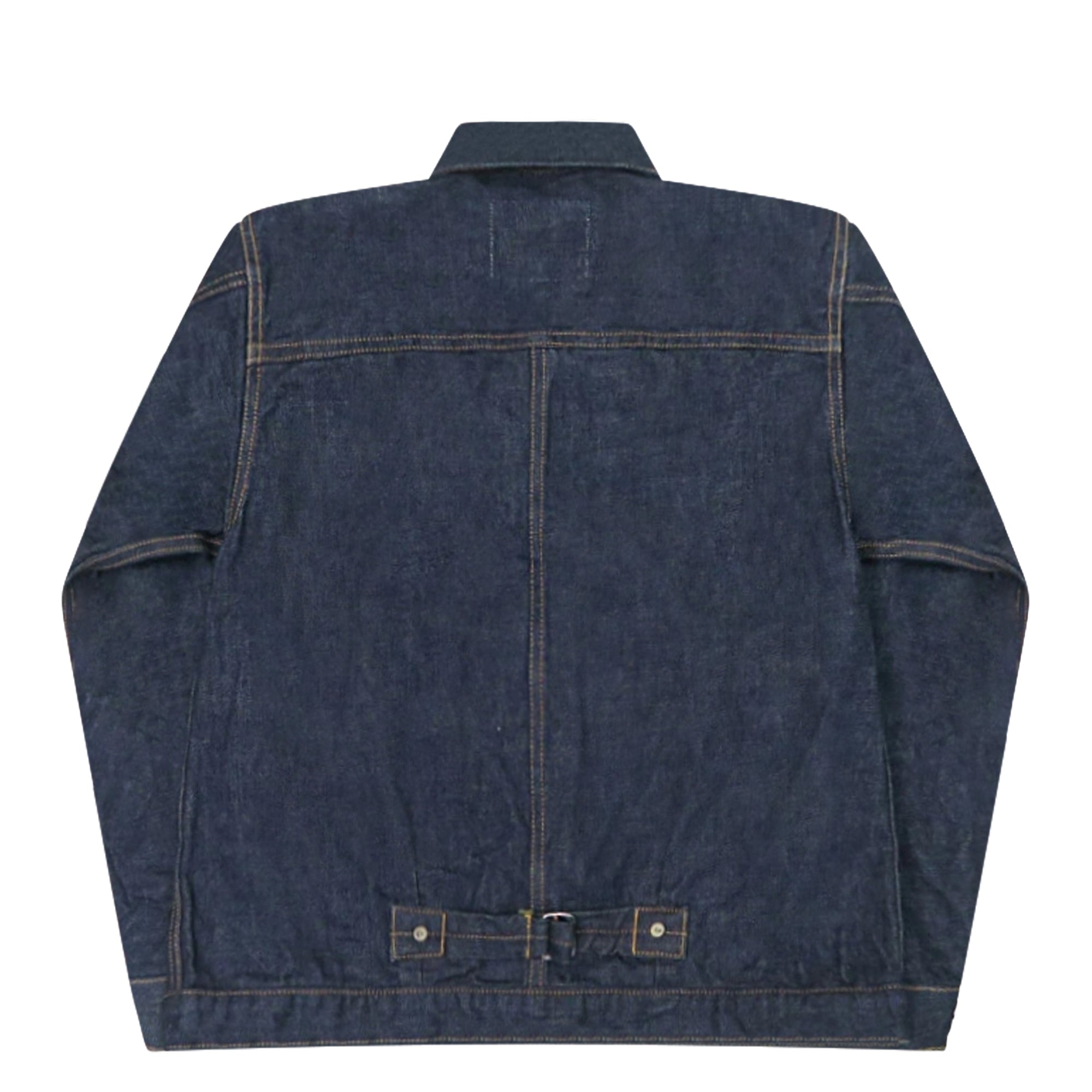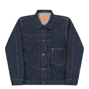 Giacca denim classica JAPAN BLUE JEANS ispirata ad archivi vintage. Vestibilità boxy e lunghezza corta, rivisitate per l’uso quotidiano. Realizzata in denim selvedge USA 14,8oz, resistente e pensato per invecchiare nel tempo. Bottoni donut, cimosa rossa, patch in pelle. Made in Japan.