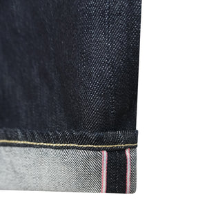 Jeans in denim Tokuno Blue 11 oz dal profondo indigo e texture irregolare. Il weft in cotone Suvin ad alta densità dona comfort e morbidezza pur mantenendo carattere. Modello #100 a vestibilità dritta, con coscia equilibrata, lieve taper sotto il ginocchio e vita avvolgente per un fit intramontabile.