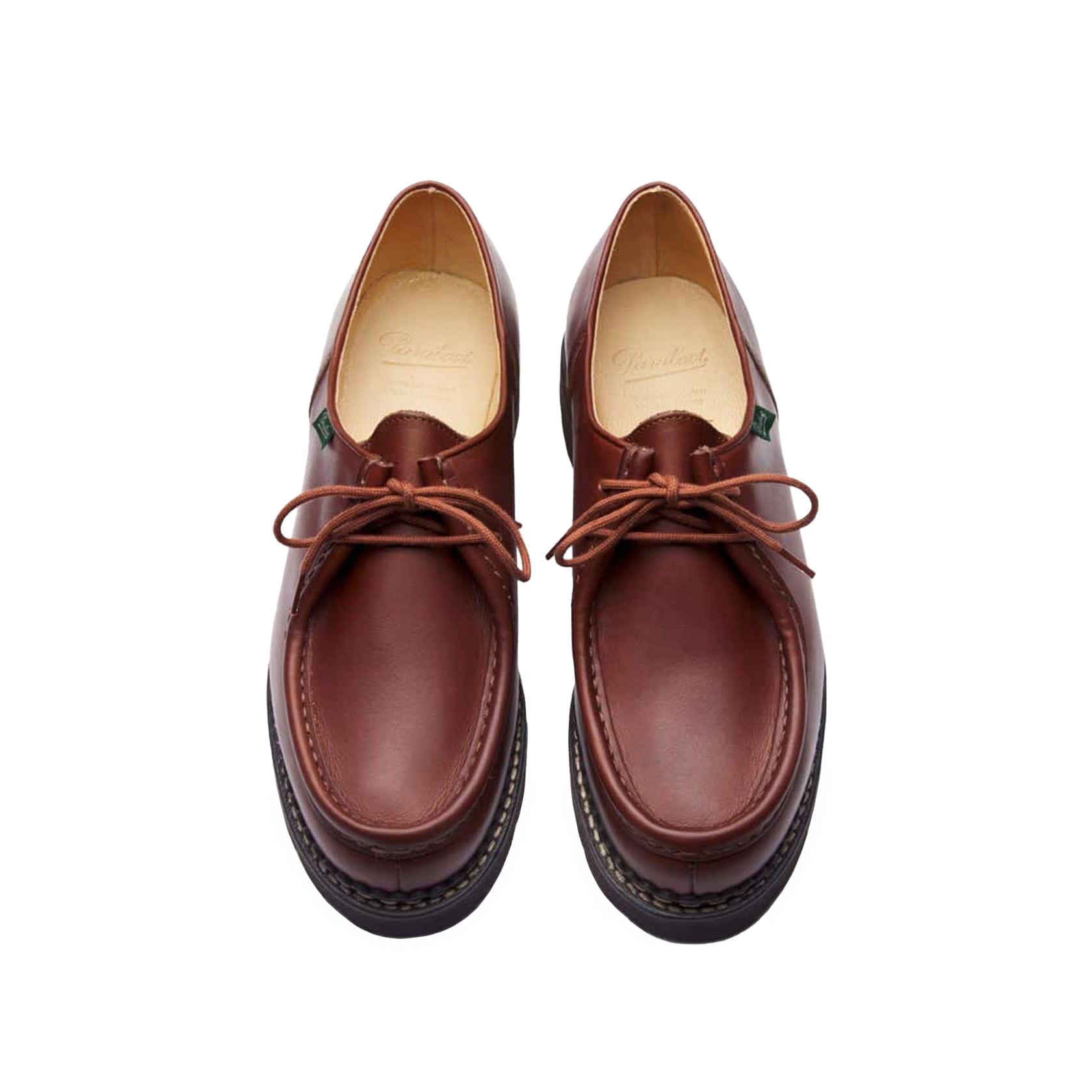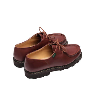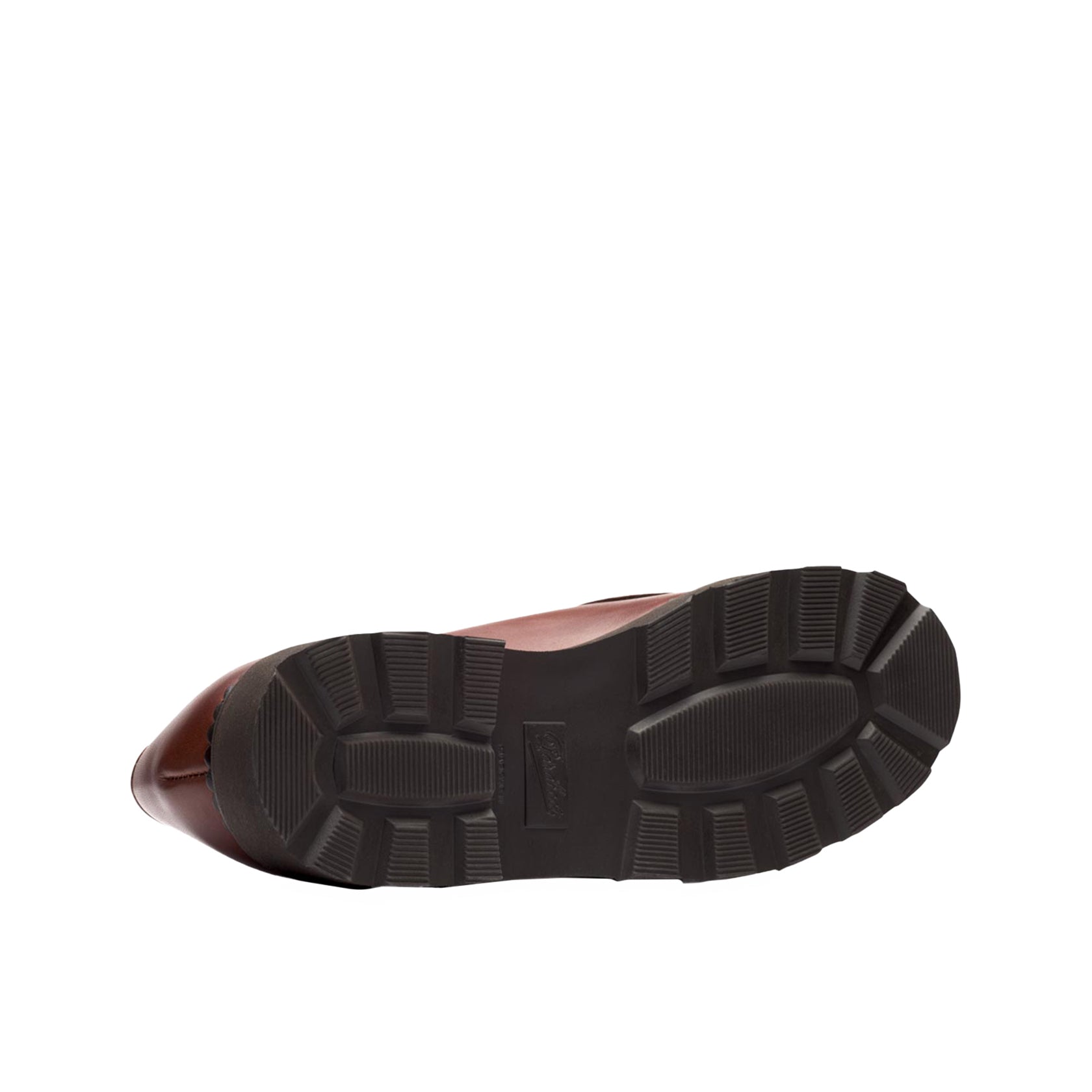 Scarpa iconica con forma generosa e punta arrotondata, creata dalla seconda generazione Richard-Pontvert. Realizzata in Francia con cucitura norvegese e fodera in pelle, attraversa le epoche con stile senza tempo. Suola in gomma naturale per resistenza e comfort.