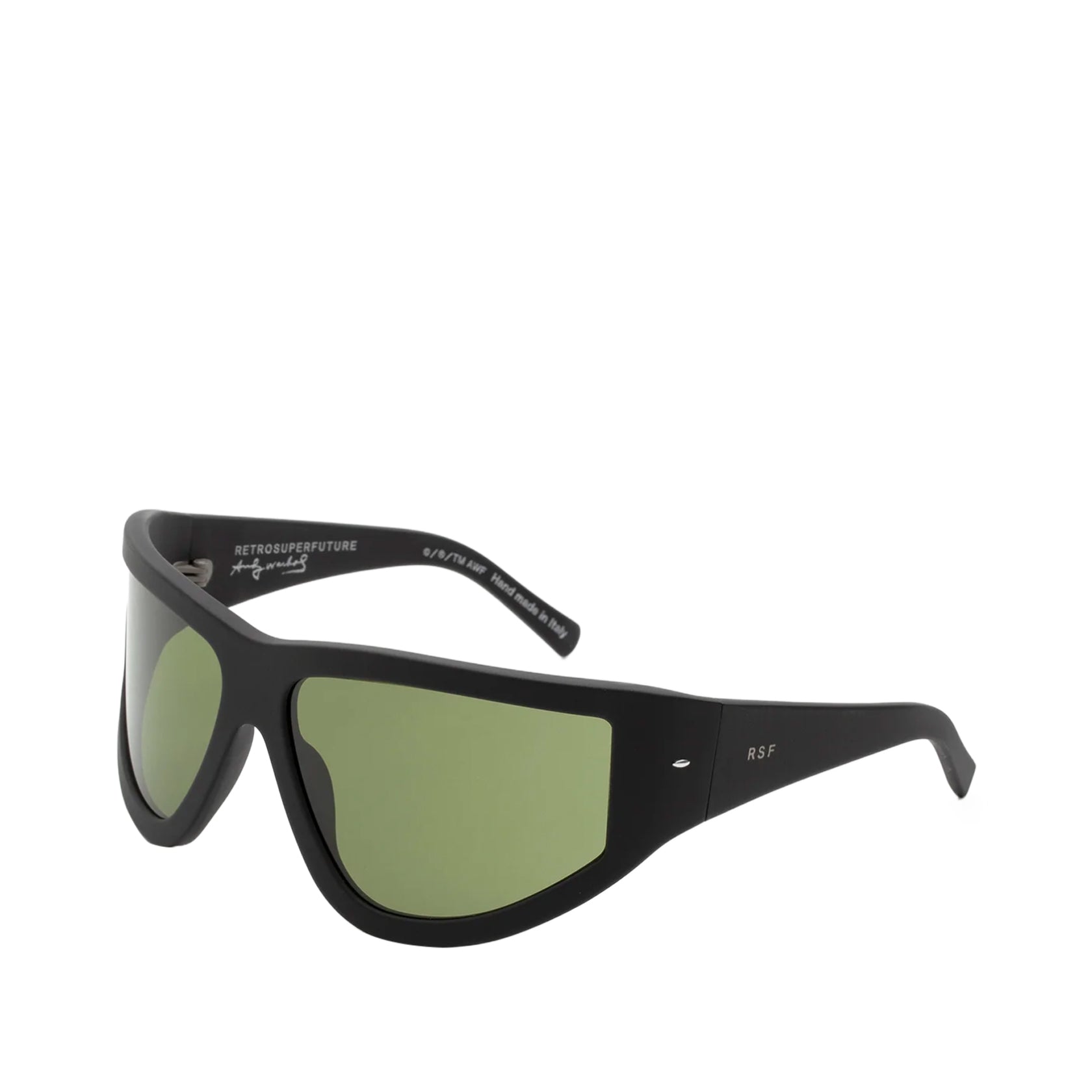 Un incontro tra sportswear e design di alta gamma, Knives è una silhouette oversize di forte impatto. Realizzata in acetato di alta qualità, presenta una montatura spessa con parte superiore angolare e lenti curve nella sezione inferiore. Il ponte a V e le aste arrotondate definiscono un design giocoso e deciso, adatto a tutte le stagioni. Versione in acetato nero opaco con lenti verde bottiglia.
