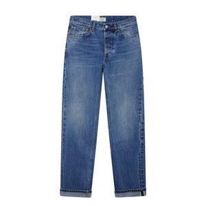 Jeans in denim 100% cotone. Vestibilità regolare, gamba dritta, vita medio alta, 5 tasche. Realizzati in Italia.