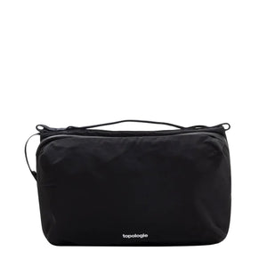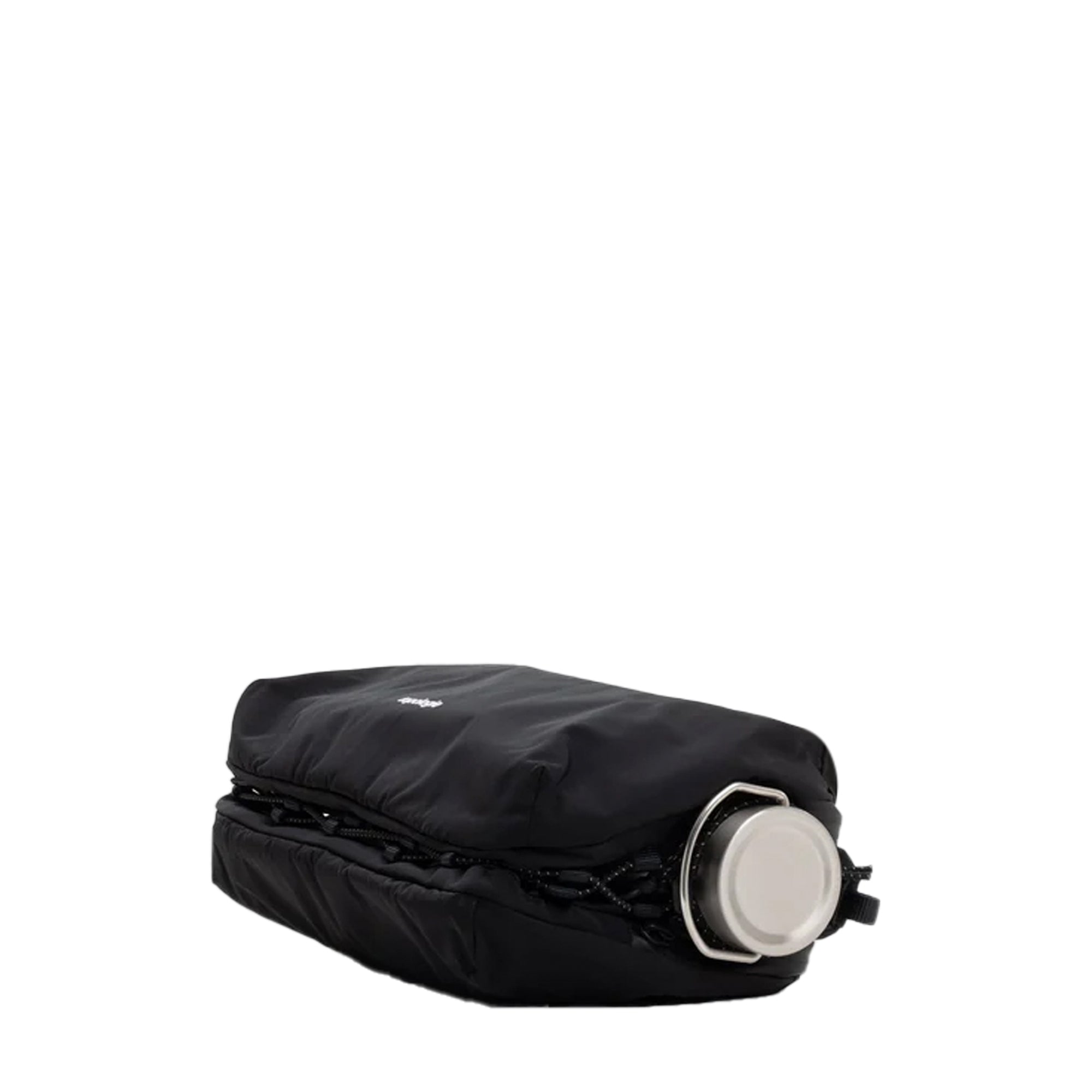 Sacoche grande porta borraccia in tessuto nero “Tech Sateen”. Design minimal e funzionale, pensata per movimento urbano e trasporto fluido degli essentials.
