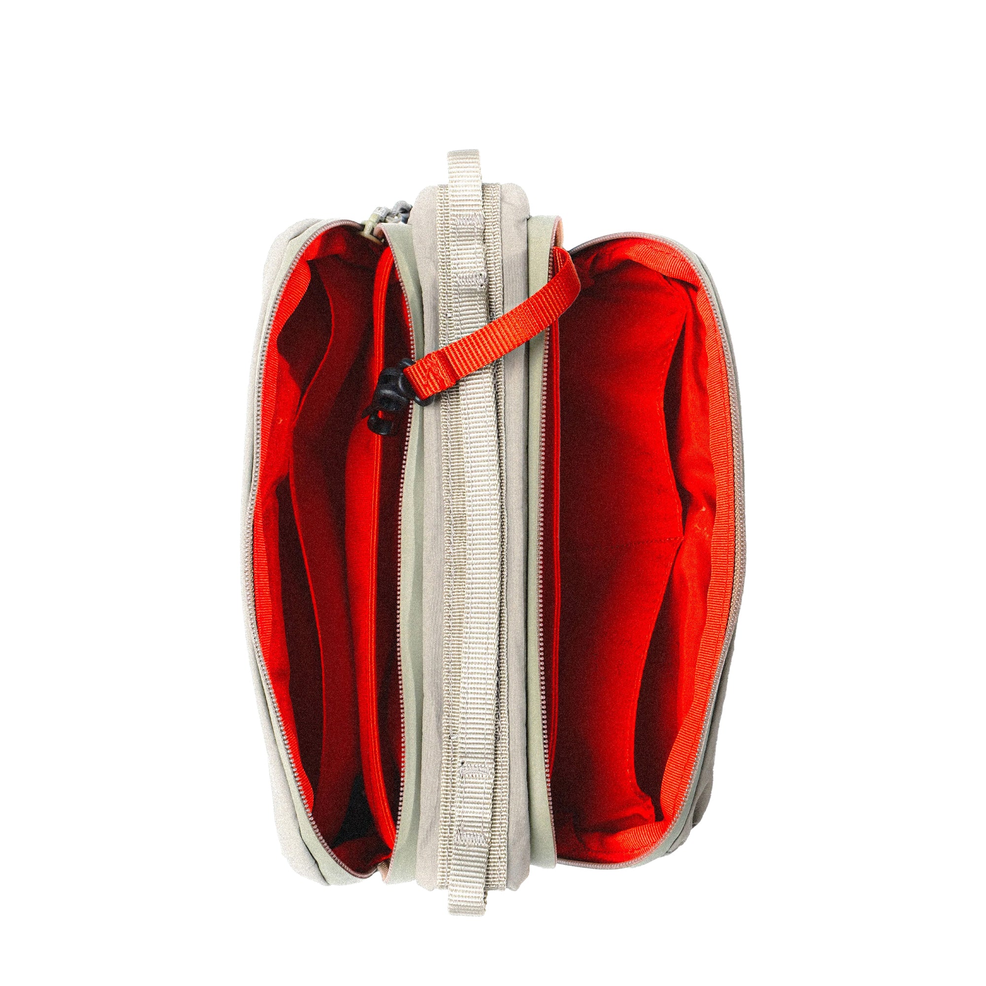 Sacoche media con finitura verde moss “Papery”. Design semplice e tecnico: flessibile nel trasporto urbano e outdoor leggero.