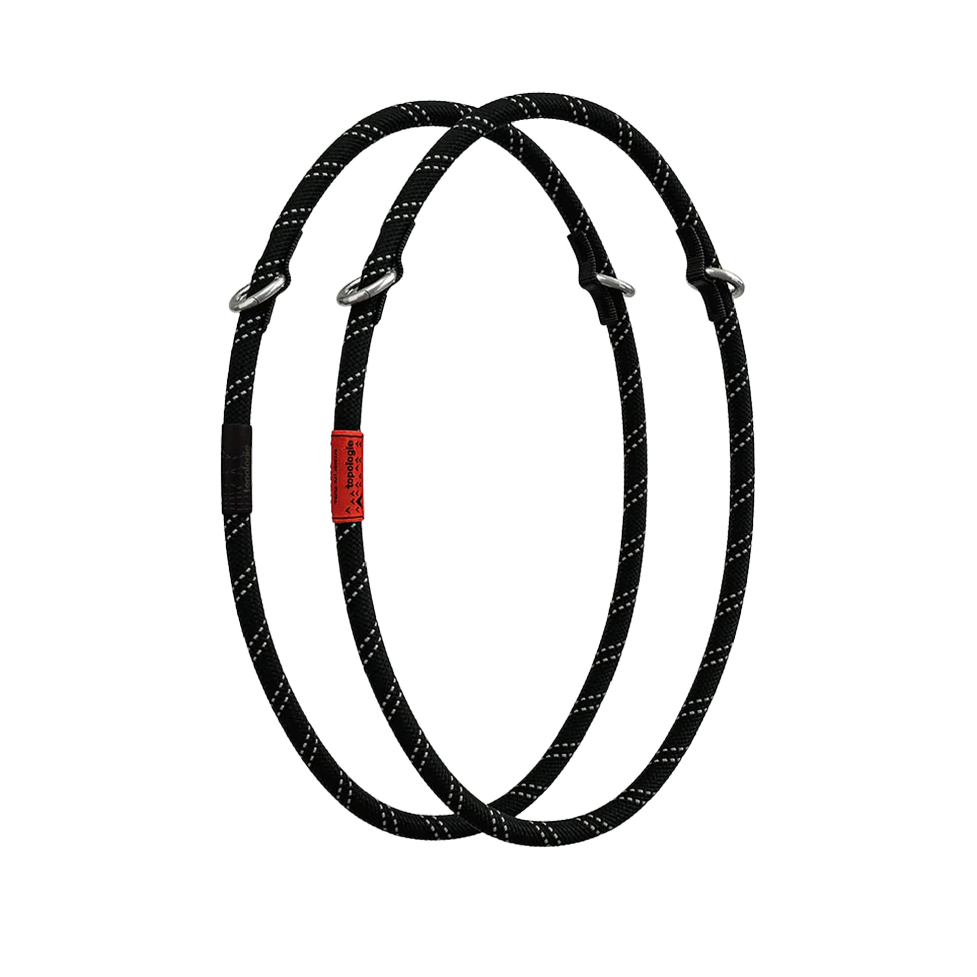 Corda loop da 10mm in nero con riflettente: sistema di fissaggio versatile, richiamo al climbing gear. Aggiungi stile e funzionalità.