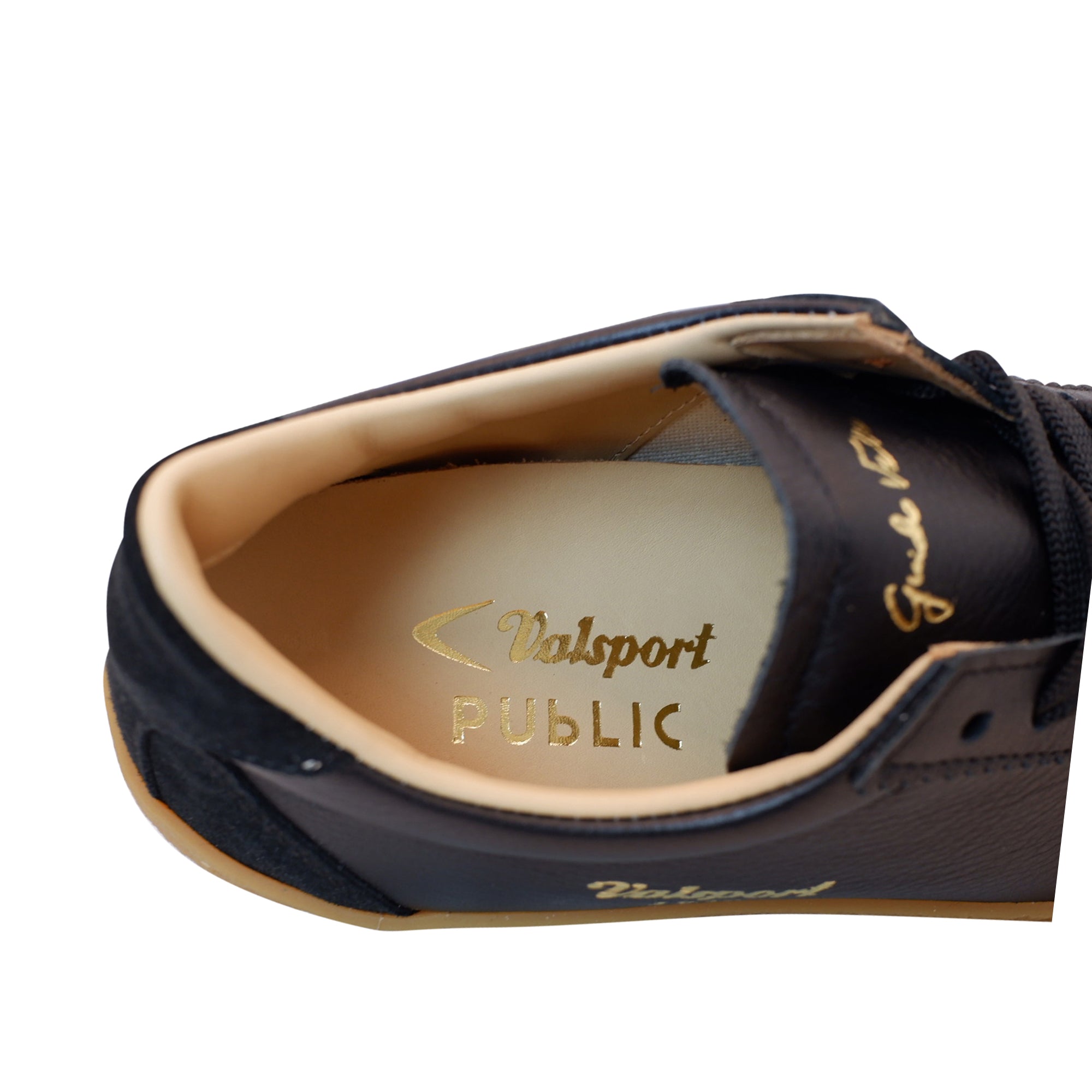 Sneaker simbolo della tradizione Valsport, fondata nel 1920. Nata dalla collaborazione con Public e firmata da Guido Valle, combina pelli naturali lavorate al vegetale e fussbett in cuoio con shock absorber per comfort, leggerezza e stile senza tempo.