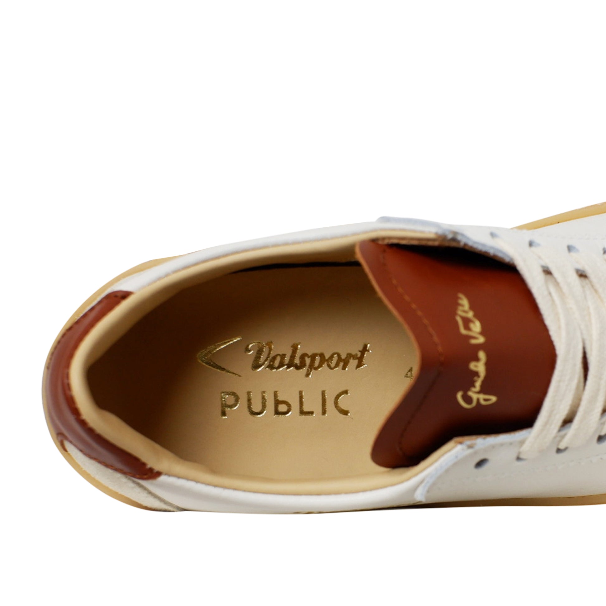 Sneaker simbolo della tradizione Valsport, fondata nel 1920. Nata dalla collaborazione con Public e firmata da Guido Valle, combina pelli naturali lavorate al vegetale e fussbett in cuoio con shock absorber per comfort, leggerezza e stile senza tempo.