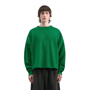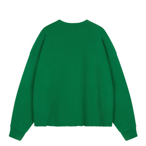 Felpa girocollo in jersey di cotone testurizzato, dal design essenziale e contemporaneo. Collo con bordino rifinito, polsini in maglia a costine e orlo a taglio vivo. Vestibilità oversize e morbida, con taglio unisex per uno stile rilassato e versatile.